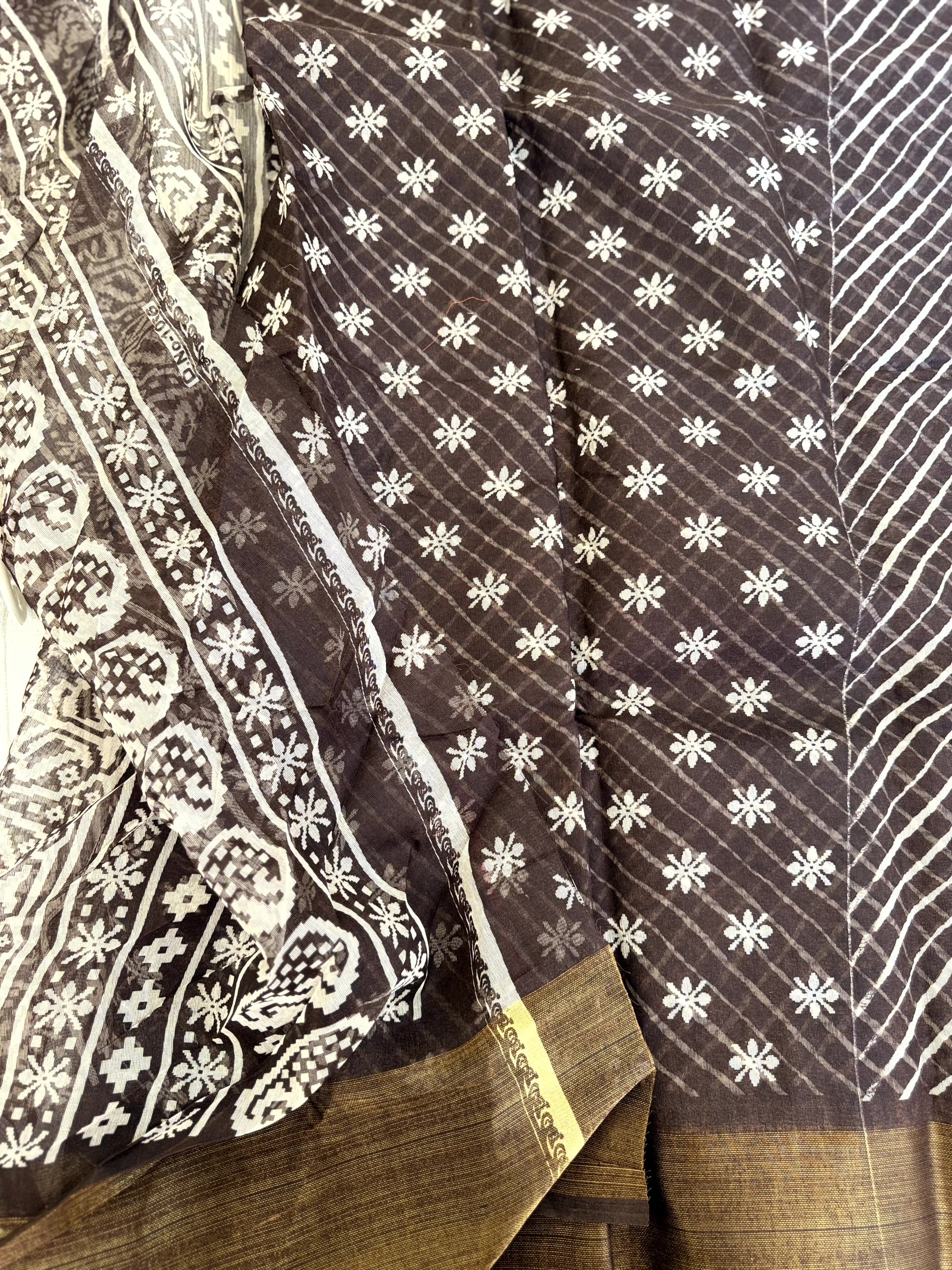 Elegant Brown Cotton Saree with Intricate Paisley and Floral Patterns