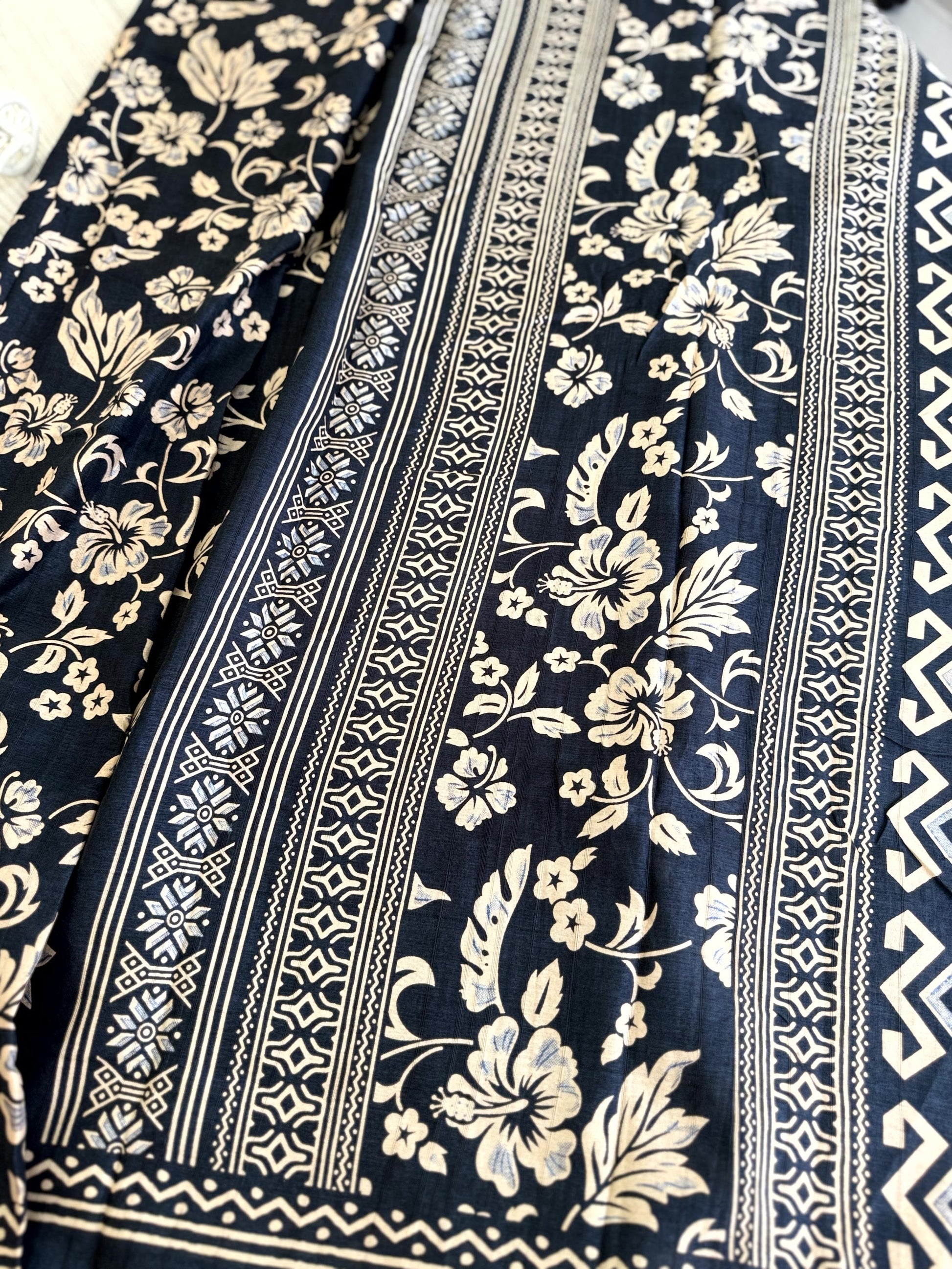 Enhance your ethnic collection with this exquisite Indigo blue Banarasi silk saree. Featuring intricate white floral motifs woven across the saree and a beautifully detailed traditional border, this saree is a masterpiece of elegance and craftsmanship. The luxurious silk fabric provides a regal look, making it perfect for weddings, festive occasions, and cultural celebrations. Complemented with a matching blouse piece, this saree effortlessly blends tradition and style.