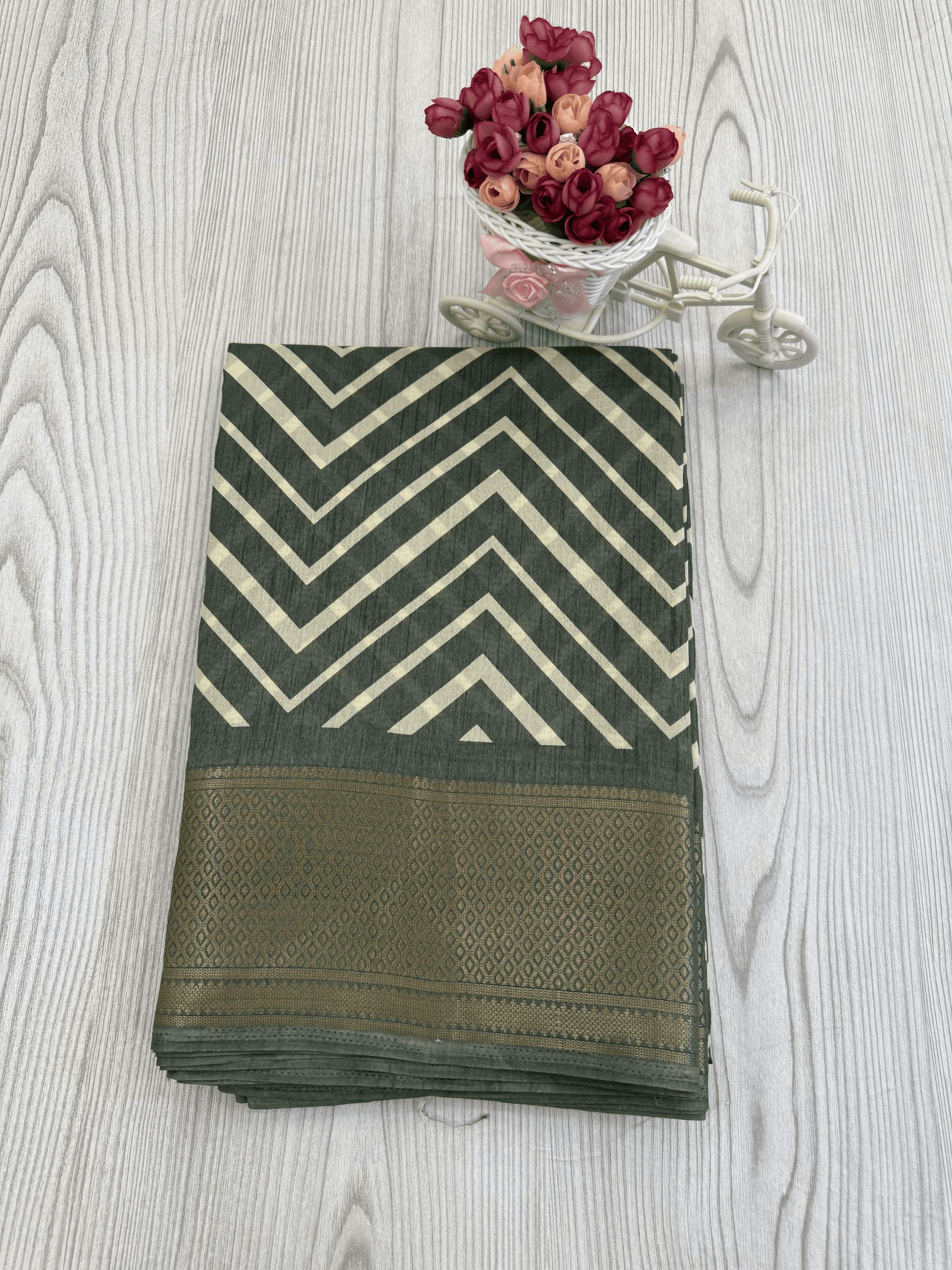 Light bottle green Graceful Pure Soft Silk Handloom Saree with Contemporary Geometric Patterns and Matching Blouse