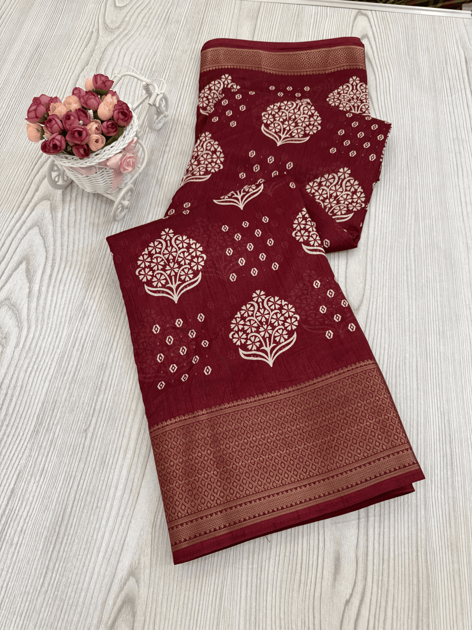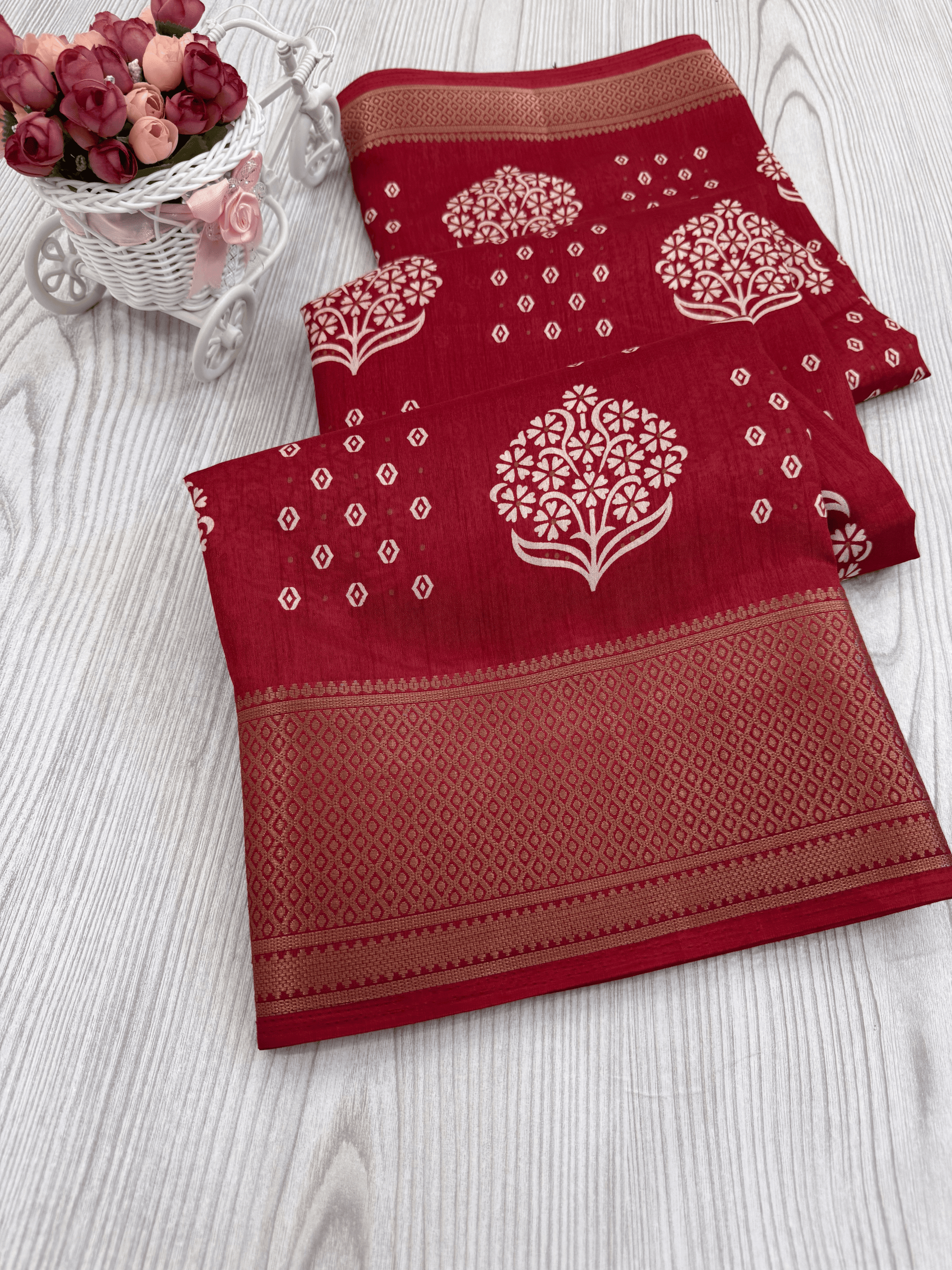 Persian red Banarasi Silk Saree with Intricate White Floral Motifs