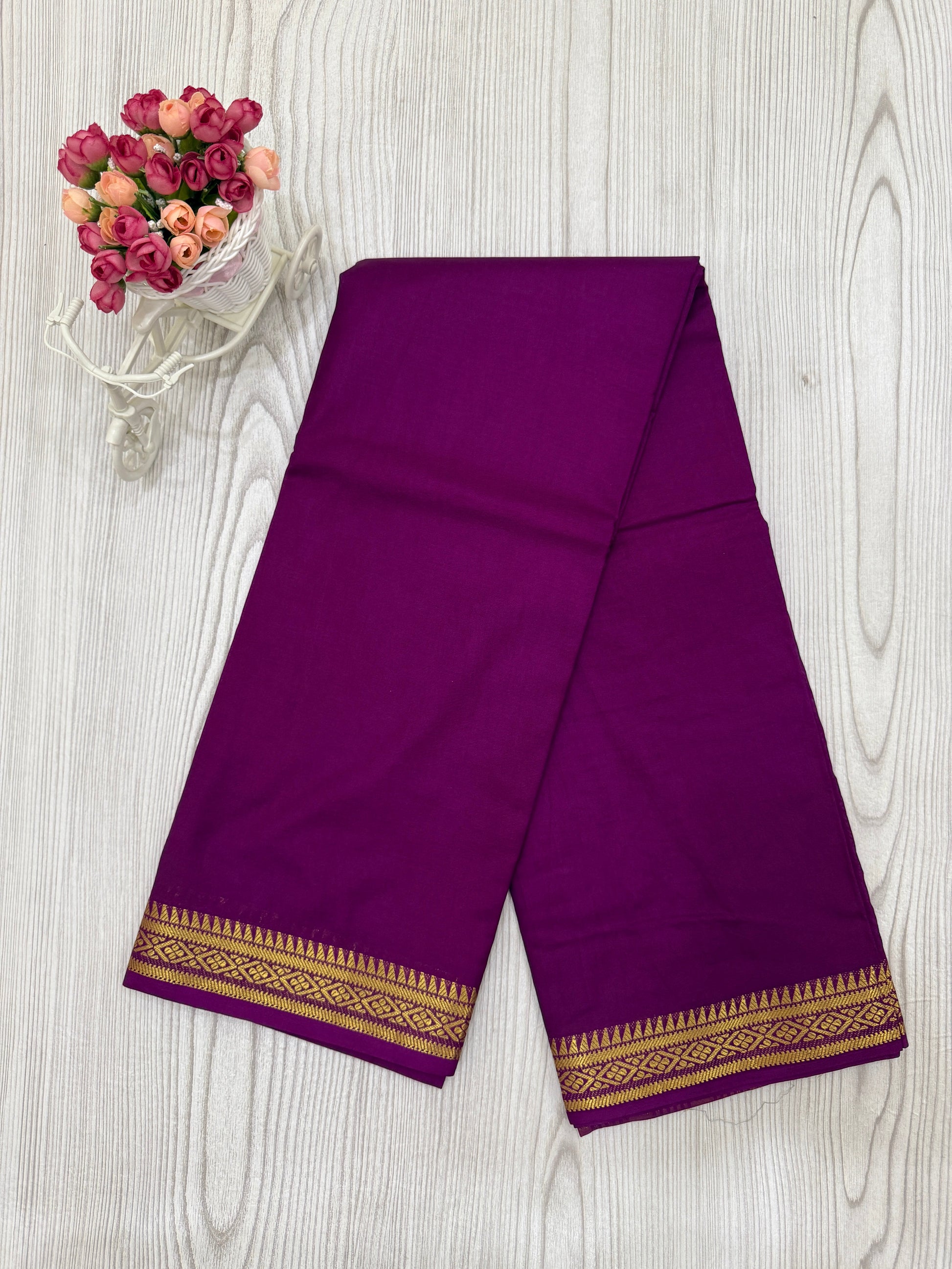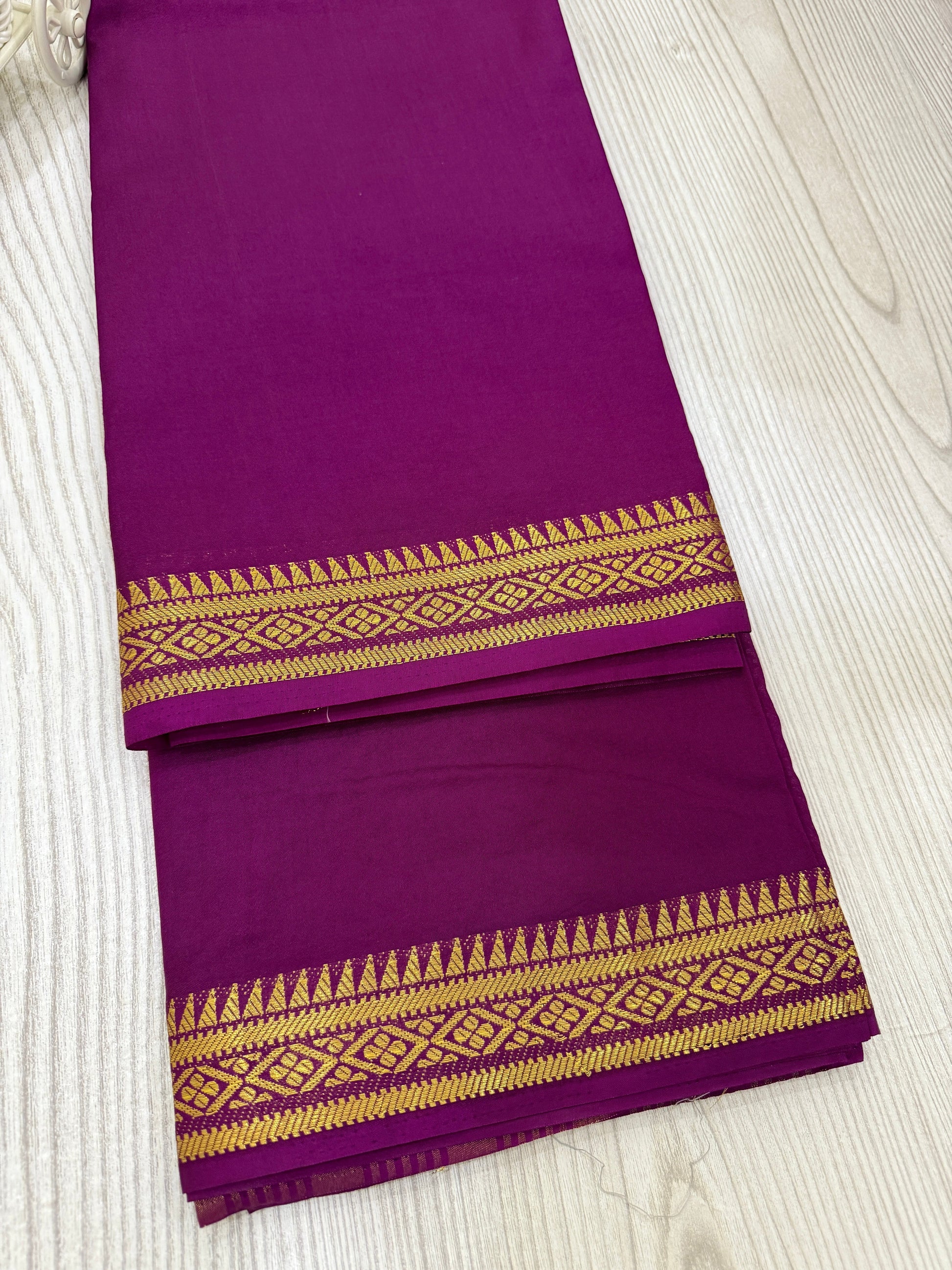 ✔ Border: Golden Zari Weaving with intricate patterns